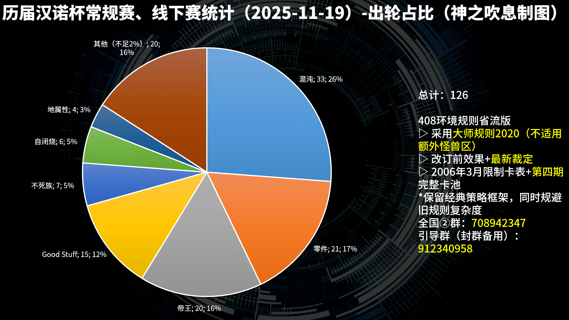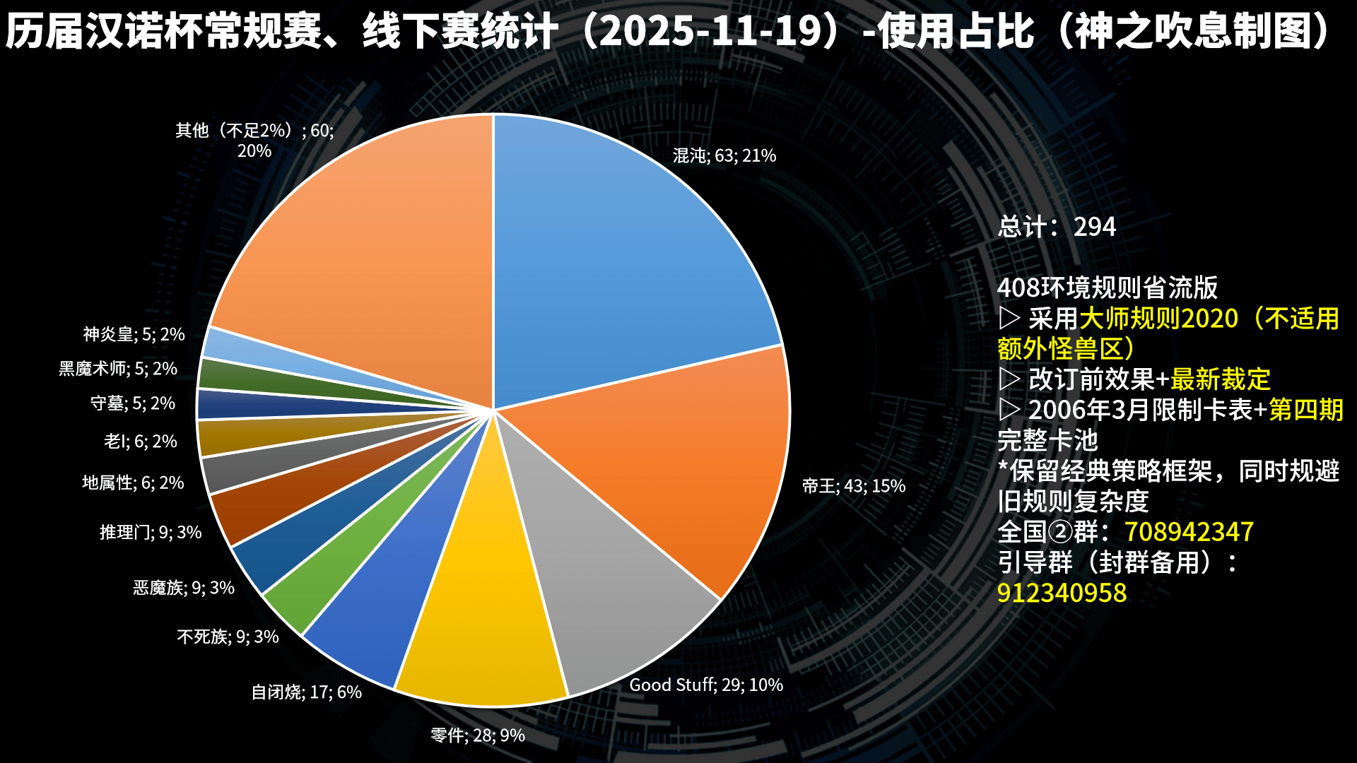 使用数:实际参赛,对比赛产生影响的卡组类型数目,分类并非绝对严格。